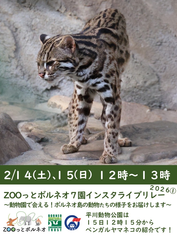 平川動物公園では、ボルネオ島の動物たちを守っていくプロジェクト「ZOOっとボルネオ サバ州生物多様性保全推進プロジェクト」に参加しています。プロジェクトに参加している日本の7つの動物園で、動物を紹介するインスタグラムでのライブ配信リレーを行いますので、ぜひご視聴ください。