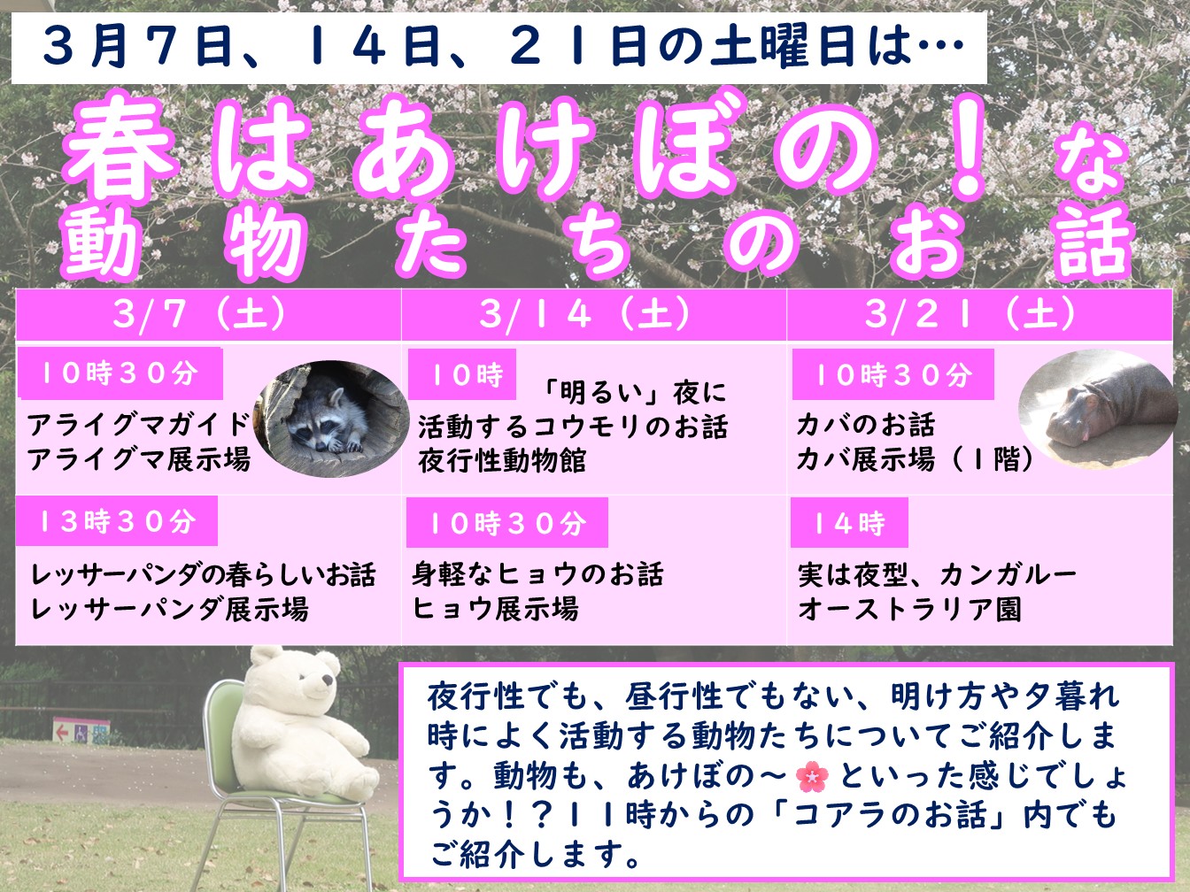 時間・場所:いずれもどうぶつ学習館