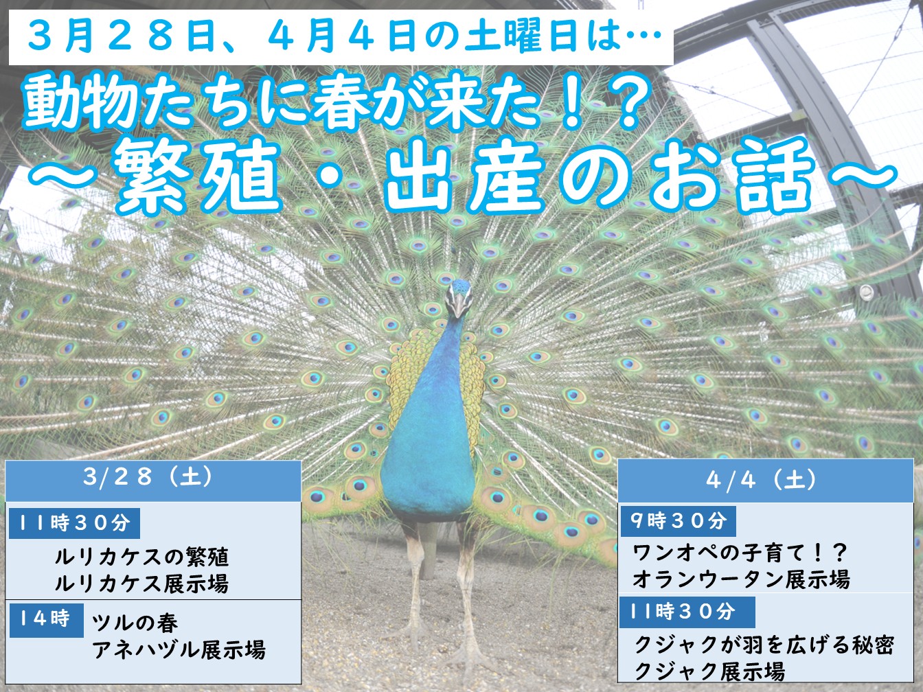 内容:春に繁殖期を迎える動物たちについてご紹介します。