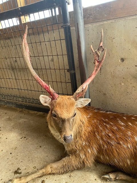 前回のブログ「ハナジカの角の成長~秋~」で今までの角の変化の復習ができます♪
