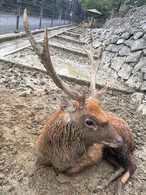今日はどれだけ泥をつけているか、角研ぎによってどんどん変わる角の形、日々いろいろな発見ができるので、ぜひシカたちに注目してみてください♪