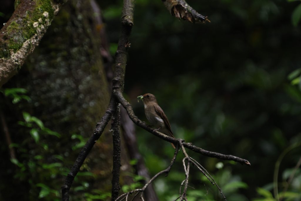 エサを運ぶオオルリ♀ 巣の近くに長くいると子育てを辞めてしまう可能性があるので注意が必要