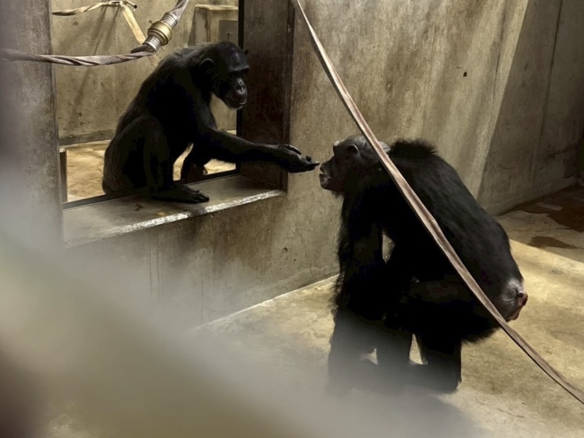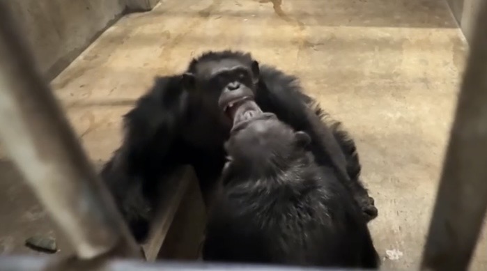 チンパンジーには親和的な行動指標がいくつかあるので、顔合わせ時にそのような行動が見られるかを観察します。