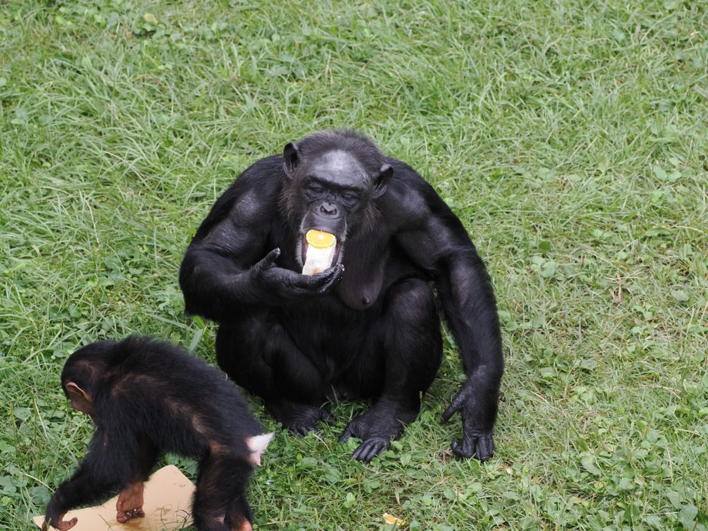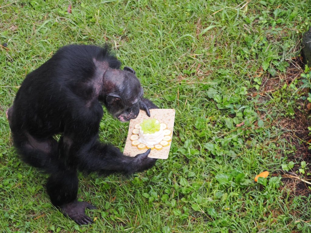 実際、チンパンジーたちの不満は全て担当者たちに向けられましたが、どうにかこうにか2週間乗り切りました…。