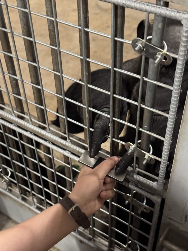 ヨシミのこと(性格、飼育環境、飼育管理、飼料、トレーニング、医療に関すること)をきちんと知った上で当園へ受け入れるための研修です。