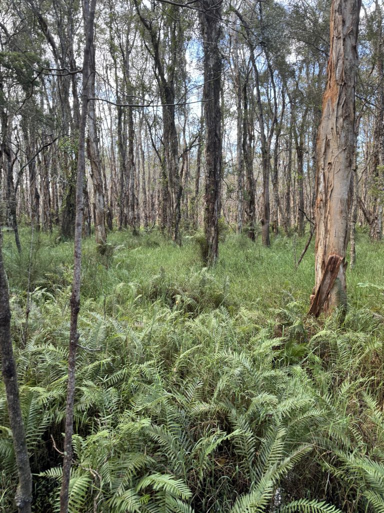 コアラが暮らしている環境を見てみるとユーカリだけでなく、メラレウカやヤシのような高木、地面を見てみるとシダ類やイネ科の地被類を確認することができました。