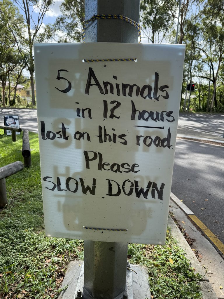 コアラの子どもが多い時期なので、ゆっくり走行するよう忠告しています。