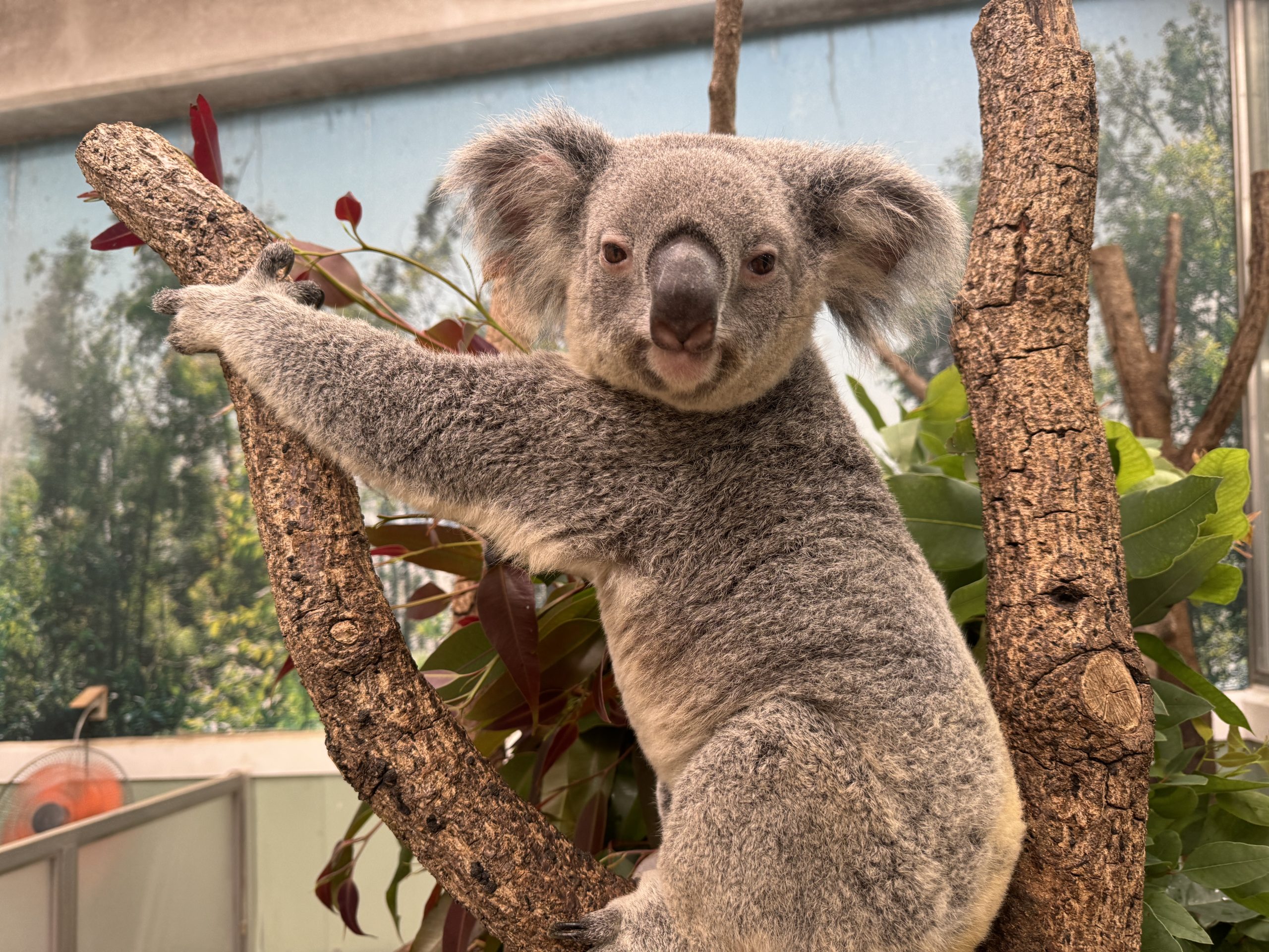 コアラはほとんどユーカリの葉のみを食べますが、時々ユーカリ以外の木にとまり、それを食べていることも見られます。