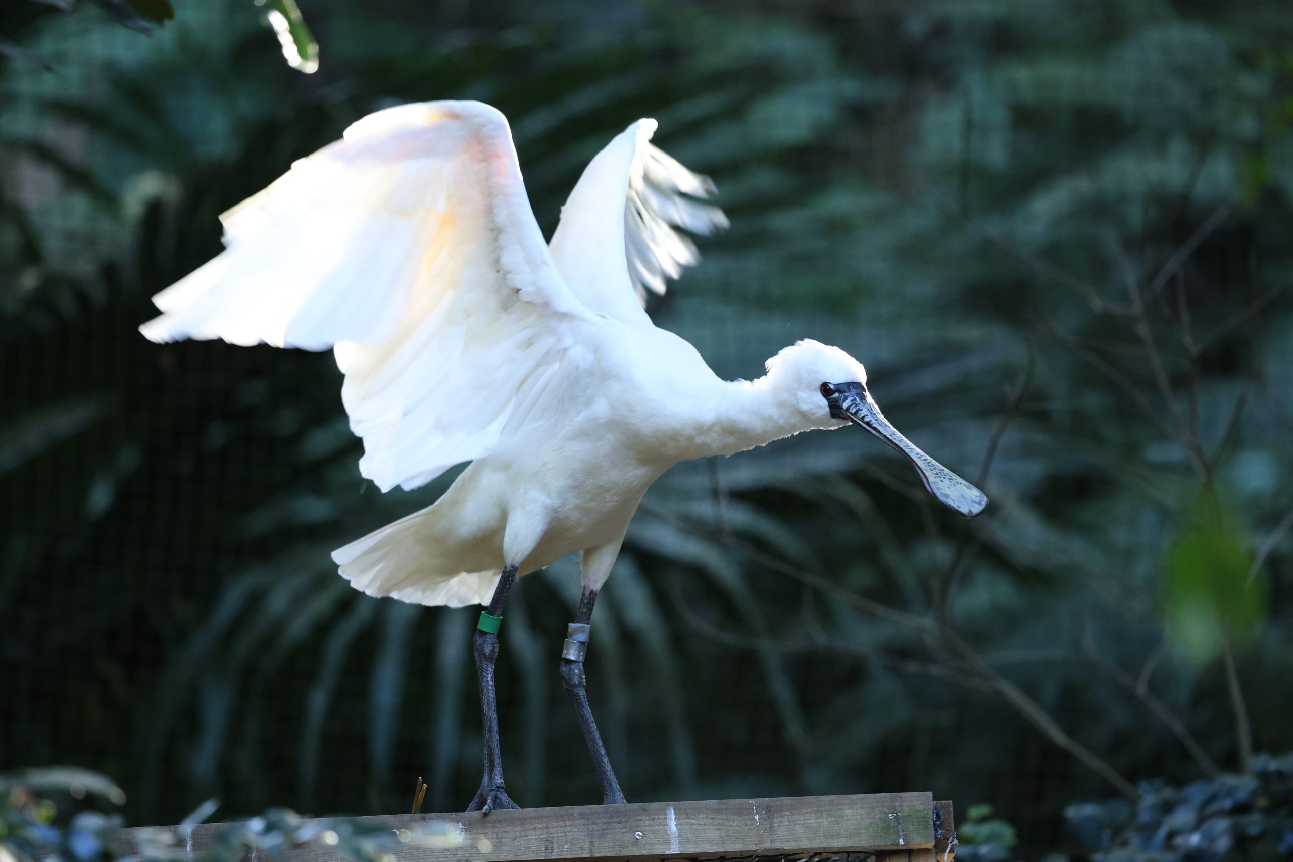 サギという名前がついていますが、トキの仲間です。 生まれたばかりのヒナのくちばしは黄色でシワ模様はなく、黒いシワ模様は大人の証!